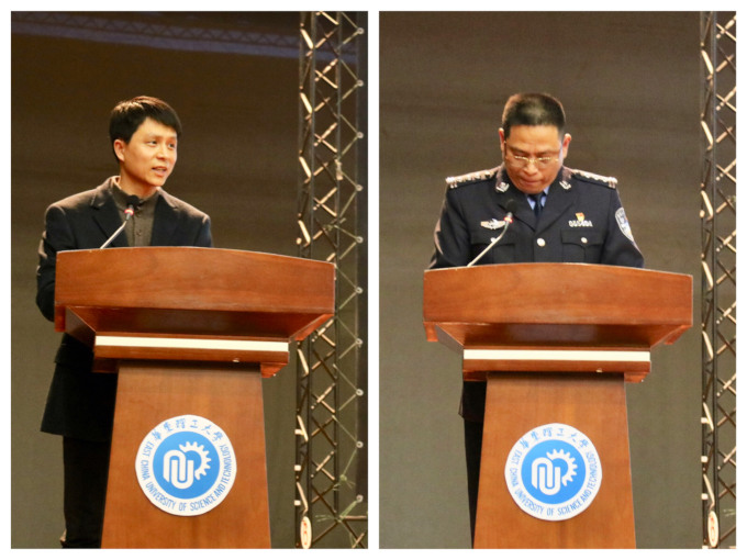 致辞结束后,项延训与姚建权共同为警院共建合作单位进行了揭牌。