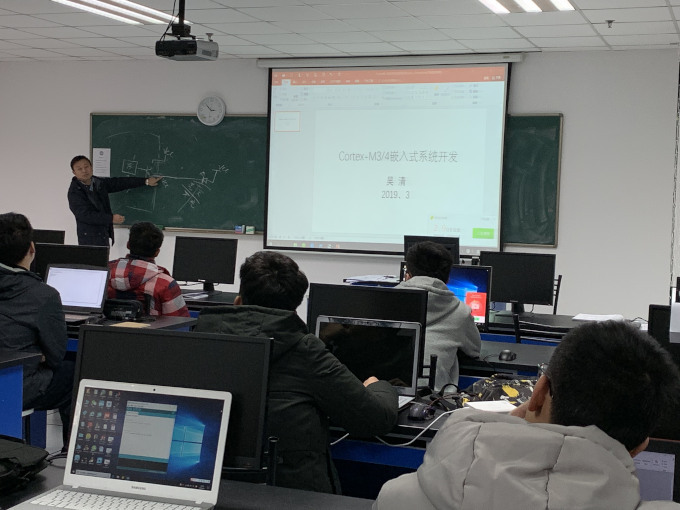 本次活动分为二个部分。第一部分安全教育。吴清老师用风趣幽默的语言给员工们普及实验室安全知识,使员工认识到安全事故的危害性,懂得如何保护自我和实验室财物。第二部分Cortex-M3/4嵌入式系统开发的培训,以实验中心Cortex-m3实验模块为基础,掌握如何开发嵌入式系统,为参加各类全国老员工比赛打下基础。