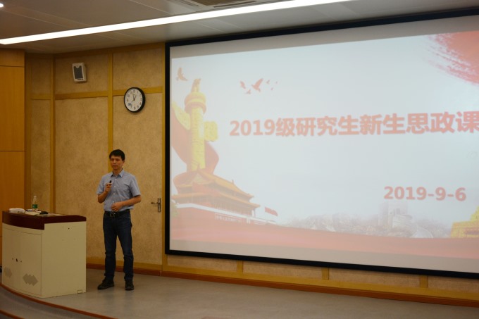 接下来,项延训给全体研究生上了一堂思政课。他带领同学们认真学习了习近平总书记在纪念五四运动100周年大会上的讲话精神,希望同学们要牢记总书记要求,“树立远大理想、热爱伟大祖国、担当时代责任、勇于砥砺奋斗、练就过硬本领、锤炼品德修为”,为实现中华民族伟大复兴的中国梦而努力奋斗!