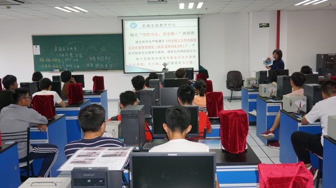 实验室安全教育和参观:机械实验教学中心老师对新生开展实验室安全教育,结合机械实验教学中心的特点,就实验室安全规定、个人防护安全、水电气及消防安全、化学危险品安全、压力容器安全、仪器设备安全、预防和急救等方面做了详细讲解,还参观了实验一楼605实验室,目睹三年级员工在实验室认识实习时如何规范着装等,让新生深刻意识到实验室安全的重要性,树立“预防为主,安全第一”的思想。