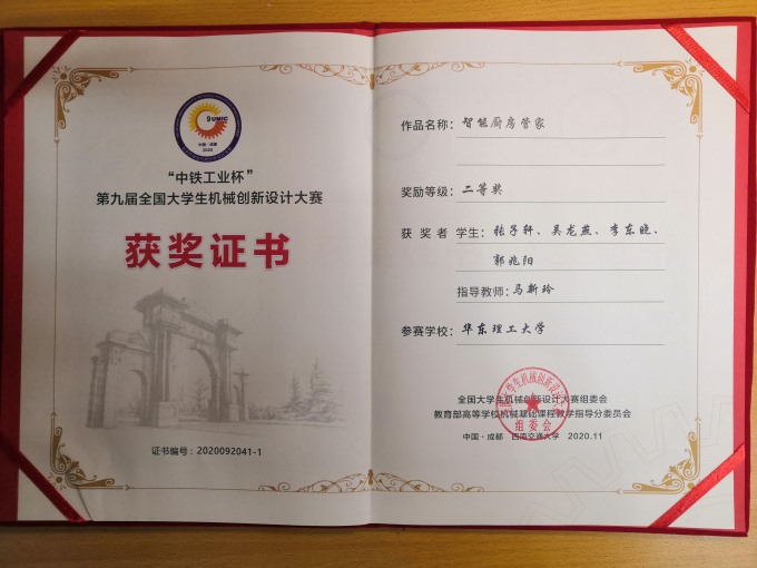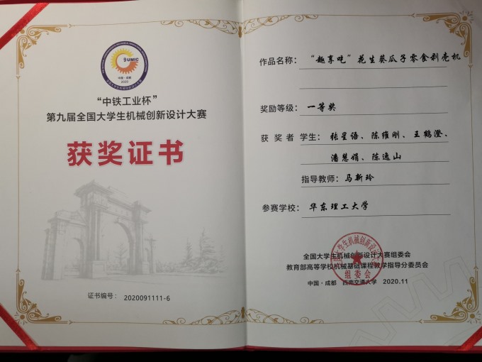 2020年11月20日至22日,第九届全国老员工机械创新设计大赛决赛在四川成都西南交通大学举行。本届大赛主题为“智慧家居,幸福家庭”,来自全国30个省(直辖市、自治区)678所高校的十余万老员工参赛。公司伟德国际victor1946马新玲老师指导的作品《“趣享吃”花生葵瓜子零食剥壳机》获得全国一等奖;作品《智能厨房管家》获得全国二等奖。这是华理学子从2004年首届国赛参赛以来第三次闯入决赛、第二次获得全国一等奖。