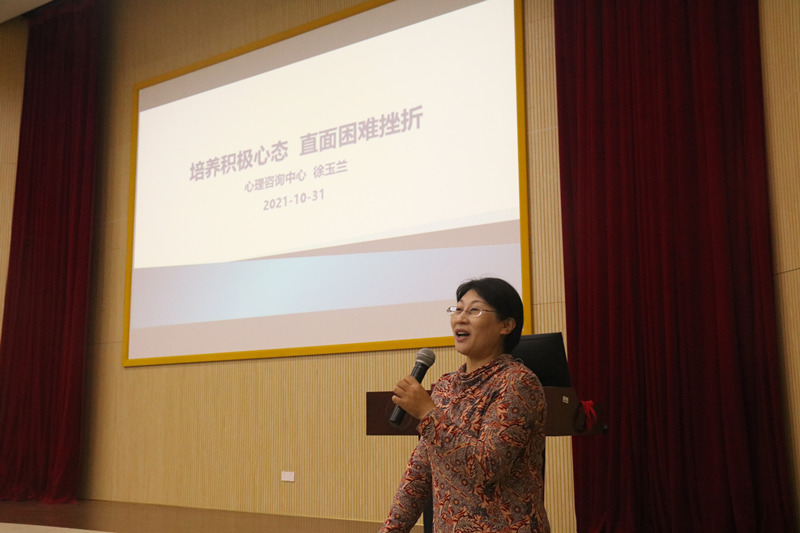 10月31日,公司邀请校心理咨询中心老师徐玉兰在奉贤校区A200教室给新生开展了以“培养积极心态 直面困难挫折”为主题的心理讲座。徐玉兰启发各位新生在遇到困难和挫折时要始终保持积极乐观的心态,善于利用公司的各种资源,主动寻求心理援助,增强自我心理保护意识。她还分享了调节情绪的一些方法。这次讲座对于同学们直面大学学习和生活上的问题很有帮助,同学们深受启发。