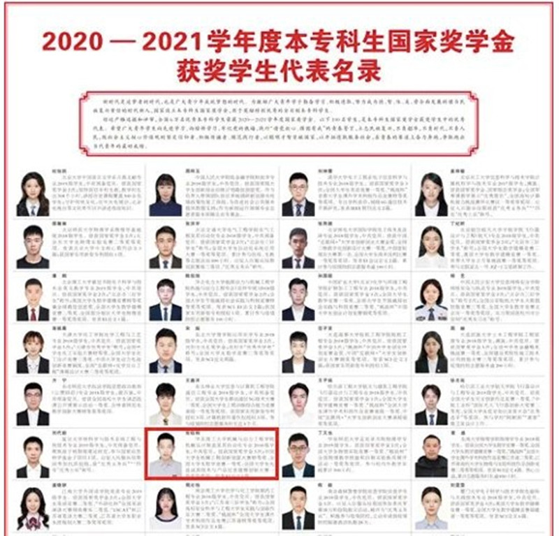 5月4日,《人民日报》刊登《2020-2021学年度本专科生国家奖学金获奖员工代表名录》,伟德国际victor1946机械设计制造及其自动化专业2018级本科生张钰炯从6万名本专科国家奖学金获奖员工中脱颖而出,作为全国100名优秀员工代表荣登该名录。