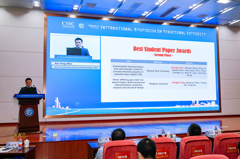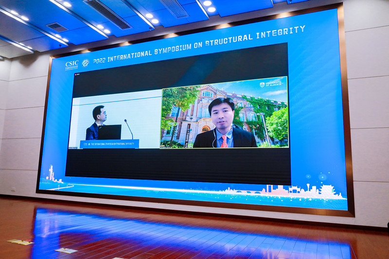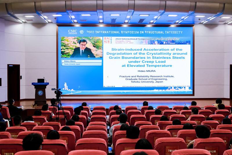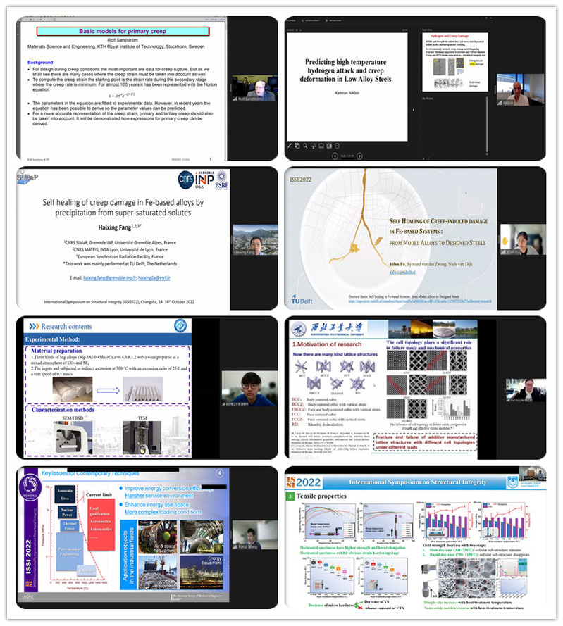ISSI2022邀请了来自中国、新加坡、日本、英国、加拿大等国的本领域14位著名专家学者在5个串行会场做特邀报告,包括中国工程院院士、浙江大学杨卫教授作题为“Solids in nano-scales - extreme strength and elasticity”的报告,美国国家科公司和国家工程院院士、新加坡南洋理工大学Huajian Gao教授作题为“Engineer metals with internal interfaces for enhanced mechanical performance”的报告,法国国家技术科公司院士、香港城市大学吕坚教授作题为“Multiscale mechanics and structural integrity of additive manufactured materials”的报告,中国工程院院士、中国石油大学(北京)张来斌教授作题为“Status and challenge of oil and gas storage tank detection technology”的报告,中国工程院院士、长沙理工大学郑健龙教授作题为“Design theory and method of new durable asphalt pavement”的报告,日本东北大学Hideo Miura教授作题为“Strain-induced acceleration of the degradation of the crystallinity around grain boundaries in stainless steels under creep load at elevated temperature”的报告,澳大利亚工程院院士、南方科技大学叶林教授作题为“Design and characterisation of mechanical meta-materials for impact mitigation”的报告,电网输变电设备防灾减灾国家重点实验室主任陆佳政教授作题为“Research and application of anti-icing technology for power grid”的报告,日本原子能机构Yinsheng Li教授作题为“Structural integrity assessment of important components in nuclear power plants”的报告,NDT&E主编、英国纽卡斯尔大学Guiyun Tian教授作题为“RFID sensors-based inspection and monitoring structural integrity”的报告,NDT&E International主编、英国布里斯托大学Bruce Drinkwater 教授作题为“Recent advances in ultrasonic array imaging and its implications for structural integrity assessment”的报告,加拿大工程院院士、阿尔伯塔大学Hongbo Zeng院士作题为“Probing reversible noncovalent molecular interactions toward developing multifunctional soft materials and surfaces”的报告,湖南大学史才军教授作题为“Design of ultra high performance concrete for resilient infrastructures”的报告,河北工业大学书记、原董事长韩旭教授作题为“Multi-source uncertainty quantification, propagation and optimization design for mechanical structures”的报告等。本次会议受到了国内外学者的广泛关注,大会报告直播在线点击量超过3万次。