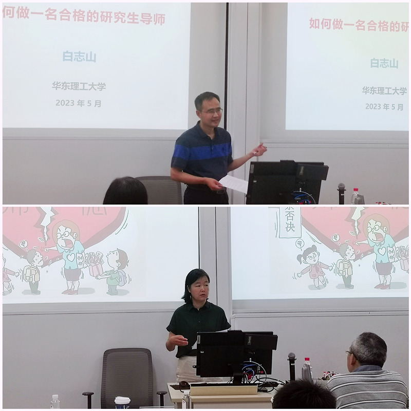 白志山以“如何做一名合格的导师”为主题从对公司产品的几点认识、公司产品存在的问题与举措等方面介绍如何站在员工发展和成长的角度,对研究生的培养做出指导。他还通报了《导师招收硕士研究生限额细则》《博士研究生指导教师遴选细则》《工程博士博士研究生招生指导意见》《研究生奖助学金》等公司研究生教学政策。李煜佳以“加强师德师风建设,培养高素质教师队伍”为主题介绍了公司师德师风考核实施办法中人才项目申报、职称评审、岗位聘用、评奖评优等方面的思想政治与师德师风考核内容以及教育部研究生导师指导行为准则。她结合案例重点介绍了新时代高校教师职业行为十项准则,让在场青年教师深层次明确了新时代教师职业规范要求。