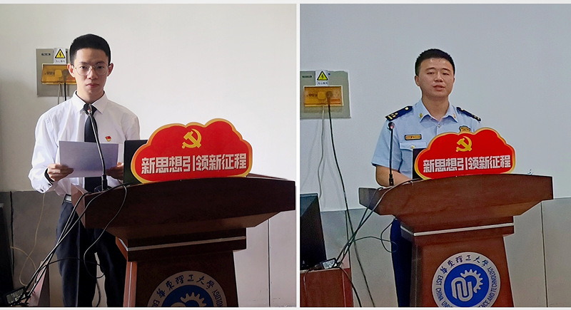 本科生第一党支部书记江其鹏毕业后将以选调生身份赴基层工作,他作为本科生毕业党员代表交流发言。他回顾了在本科期间连续三年参与防疫抗疫志愿服务和社会实践经历,用行动诠释了最美的奋斗青春。他表示,毕业后将继续秉承华理“勤奋求实,励志明德”的校训精神,牢记党员身份,将青春奋斗融入党和人民事业。员工陈柏江以学长的身份分享了自己求学、求职的心路历程,勉励毕业生党员兢兢业业做事、干干净净做人,在学思践悟中踔厉奋发,时刻发挥党员的模范带头作用,让青春在党和人民最需要的地方绽放,以更加优异的成绩回报社会、回报母校。