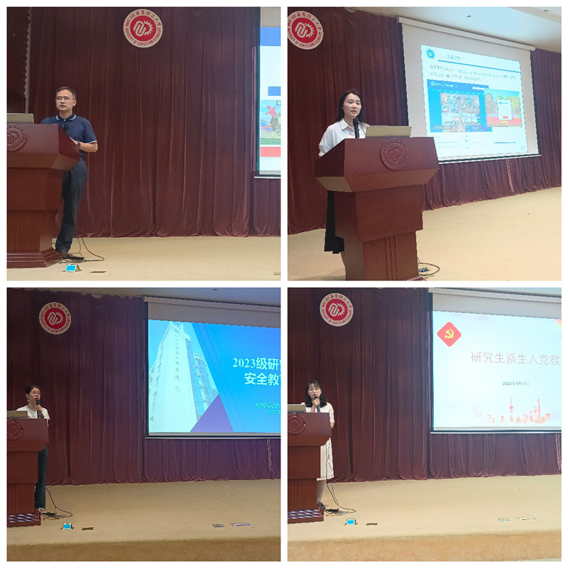 白志山就公司的总体概况、发展历程、团队力量和团队建设等方面向同学们进行了详细介绍,并鼓励同学们做好研究生期间的生涯规划。公司研究生教务老师陈晓卿着重为新生讲解了选课流程、注意事项、学科讲座等。公司安全员老师余醉仙通过生动的视频跟大家讲解了实验室安全的重要性。研究生辅导员李喜娜、陈志霞以及党建老师王玉琳向同学们介绍了公司评奖评优、三助一辅、 违纪违规、安全防诈、入党流程等内容。