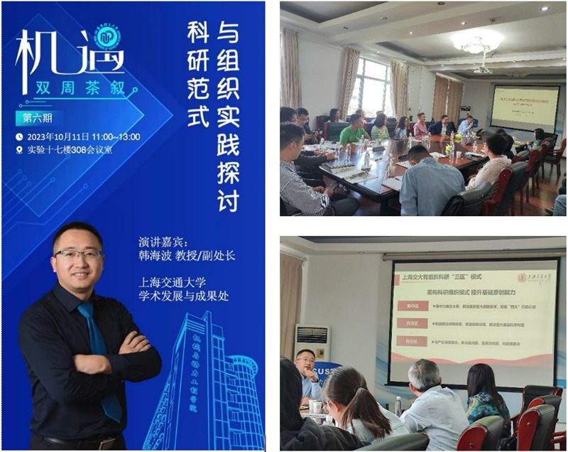 10月11日,公司青年教师杨雪晶、贾云飞、孙彬涵等作为召集人组织开展的“机·遇 双周茶叙”系列青年成长沙龙(第六期)在徐汇校区举行。上海交通大学学术发展与成果处副处长韩海波以“科研范式与组织实践探讨”为题作主题分享。公司30余名教师参加了此次活动。