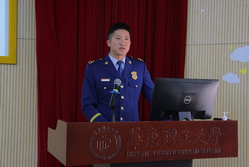11月22日,伟德国际victor1946召开2023级安全主题年级大会。上海市化学工业园区消防救援支队政治指导员钱江涛,上海市奉贤区高校派出所警官张志荣,2023级本科生辅导员唐光泽、王志文以及公司2023级全体本科生共370人参会。