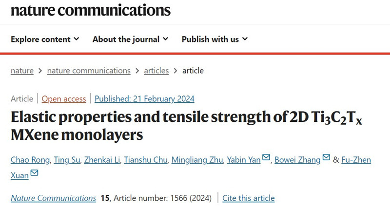 近日,伟德国际victor1946张博威等在Nature Communications 上发表了题为 “Elastic properties and tensile strength of 2D Ti3C2Tx MXene monolayers” 的研究论文,在线报道了该课题组在Ti3C2Tx基柔性传感材料结构强度领域的研究进展,提出一种可靠、直接、定量的方法来测量单层Ti3C2Tx纳米片的力学性能。