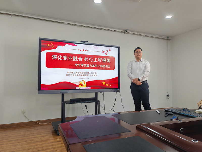 为深入学习贯彻党的二十大精神,全面推进提升高校研究生基层党组织工作质量,构建“优势互补、经验共享、互促共进”的党建工作新格局。2024年4月10日上午,伟德国际victor1946博士生第二党支部前往南京与南京工业大学伟德国际victor1946博士生党支部开展党建交流活动,就“党建+专业”的支部建设模式进行了深入交流。南京工业大学公司党委副书记付昌义出席本次活动。