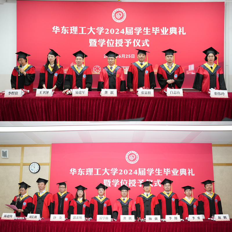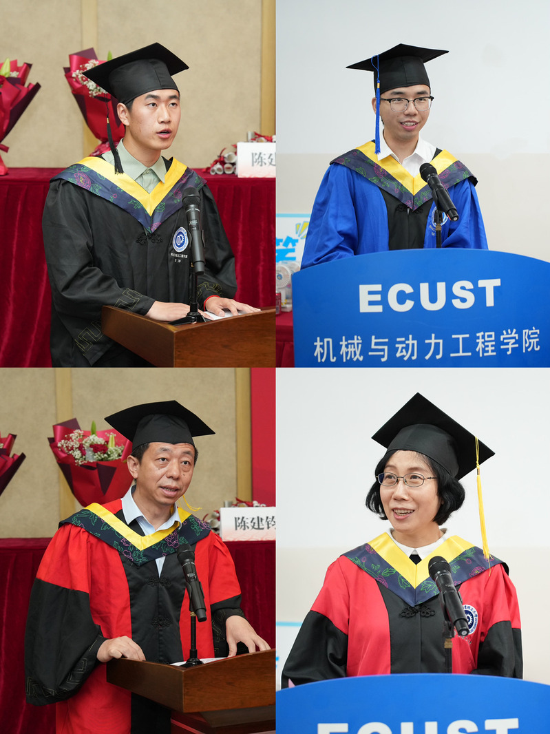 本科生班导师代表刘长利教授以“凡是过往,皆为序章”相赠毕业生,希望大家继续秉持华理“勤奋求实,励志明德”的校训精神,怀揣“苟利国家生死以,岂因福祸避趋之”的家国情怀,投身中华民族的伟大复兴事业,再次书写新的人生篇章。研究生导师代表栾伟玲教授以“保持好奇心、保持微笑、坚持不懈”寄语毕业生,希望毕业生们保持对学习的热情,不断探索知识;在困难和挑战面前坚定信念,勇往直前;在未来的不确定性面前,坚持梦想,扬帆奋楫远航。