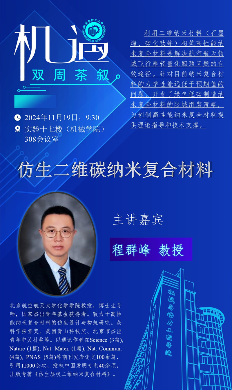 报告人:程群峰,北京航空航天大学 化学公司 教授