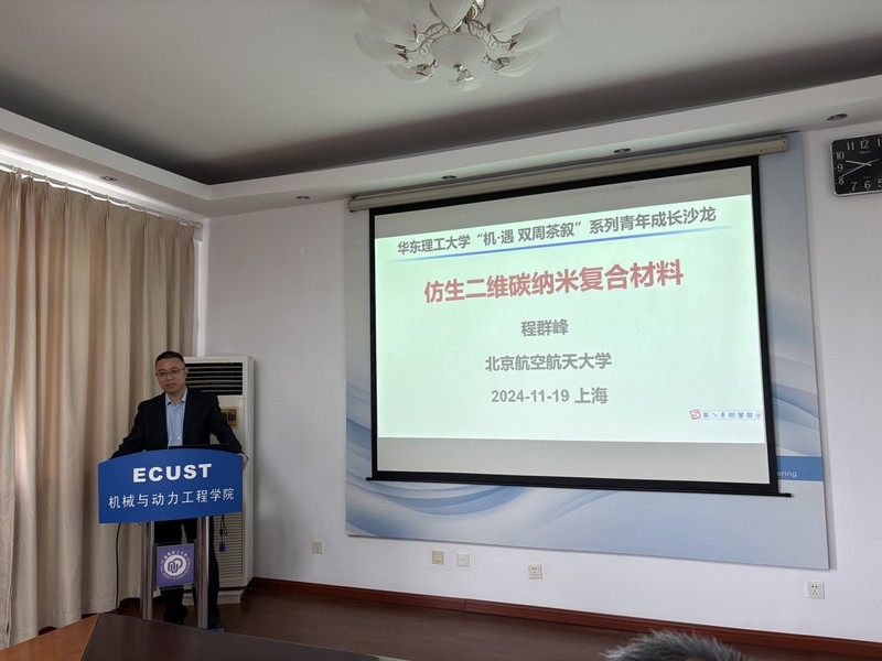 11月19日上午,“机·遇 双周茶叙”系列青年成长沙龙(第二十期)在徐汇校区举行。本次活动邀请了北京航空航天大学化学公司程群峰教授作题为“仿生二维碳纳米复合材料”的学术报告。伟德国际victor1946副经理白志山、张博威特聘研究员、王涛特聘副研究员、化学与分子工程公司张斌副教授等多位老师以及硕博士研究生参与了本次活动。