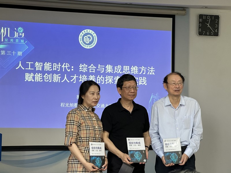 程光旭结合书籍内容作了题为“人工智能时代:综合与集成思维方法赋能创新人才培养的探索与实践”的专题报告,从工程的涵义和本质特征出发,深入分析了现代工程技术的新特点及现代工程复杂性的挑战;重点讲述了钱学森“大成智慧”教育思想的现实意义、综合与集成思维方法的探索与实践以及该思维方法对创新人才培养的重要性。他强调,在人工智能深刻变革各领域的当下,超越单一学科壁垒、强调整体驾驭与创新性整合的思维素养,已成为驱动未来科技与工程创新的核心能力。